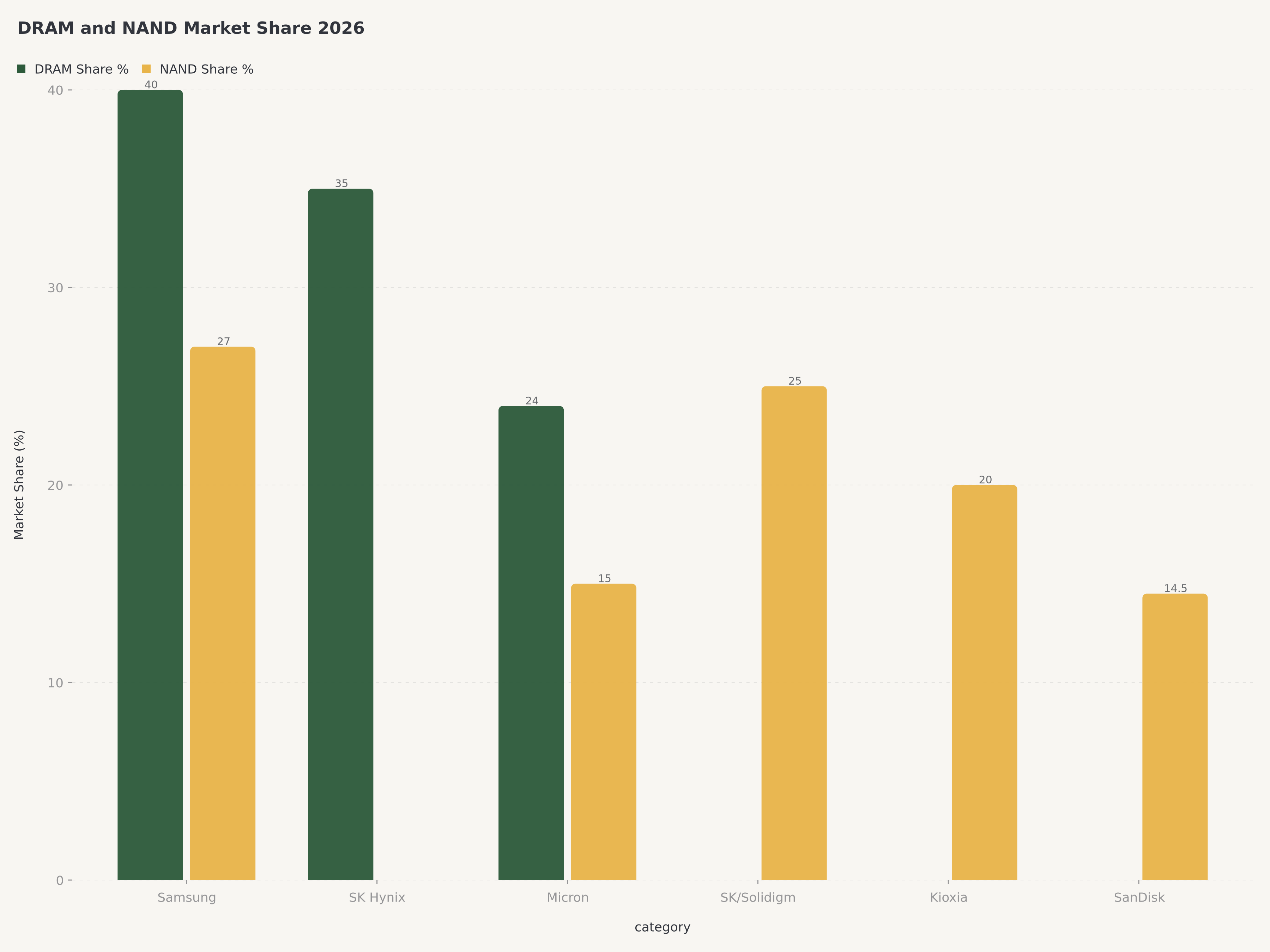 競争ポジショニング:DRAM寡占 vs NANDコモディティ