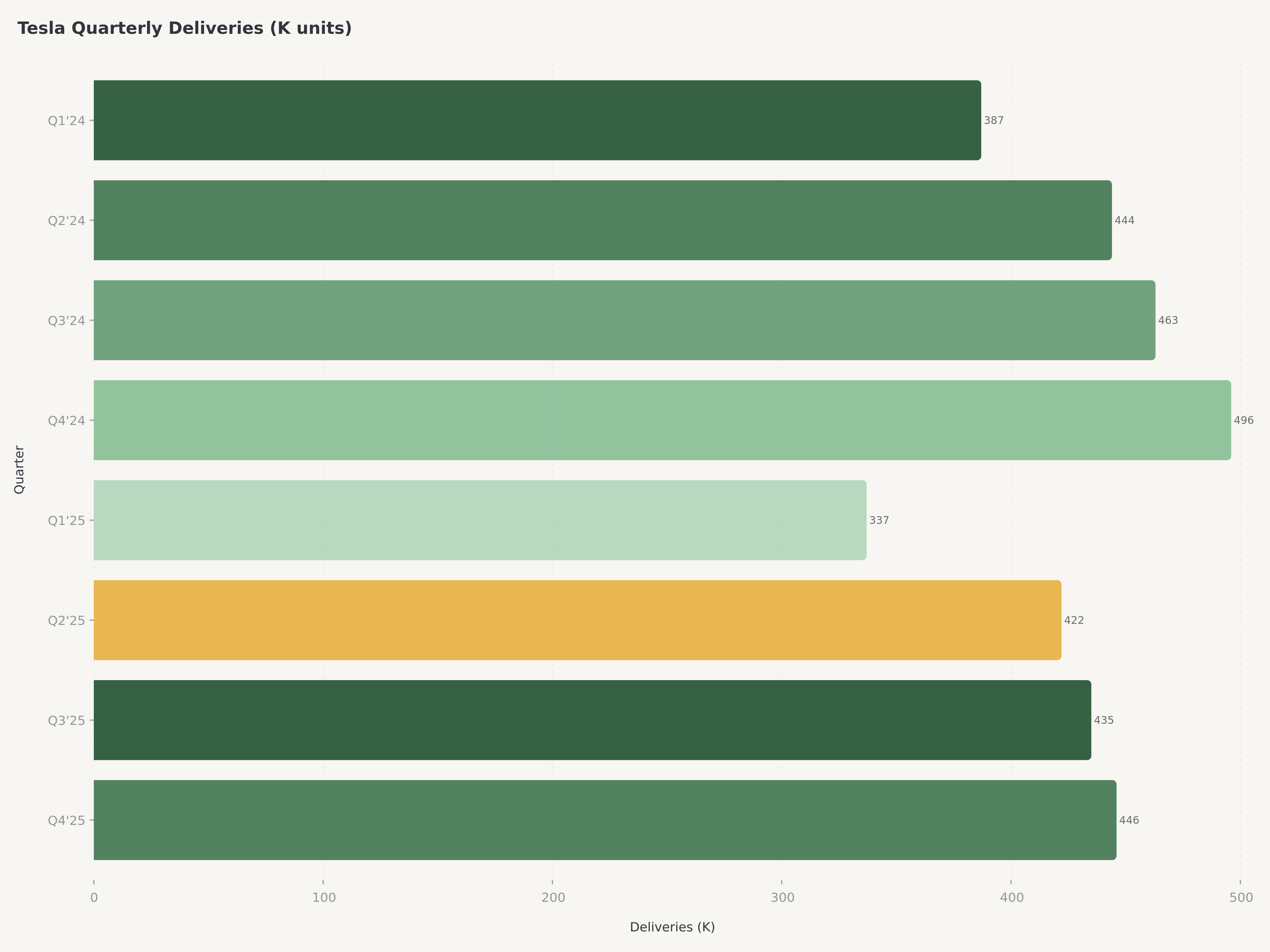 - エネルギー発電・蓄電部門は真の好材料として浮上し、前年比27%成長の128億ドルを達成、現在は総売上高の13%超を占め、コモディティ化が進む乗用EV市場からの構造的な事業多角化を提供している。
