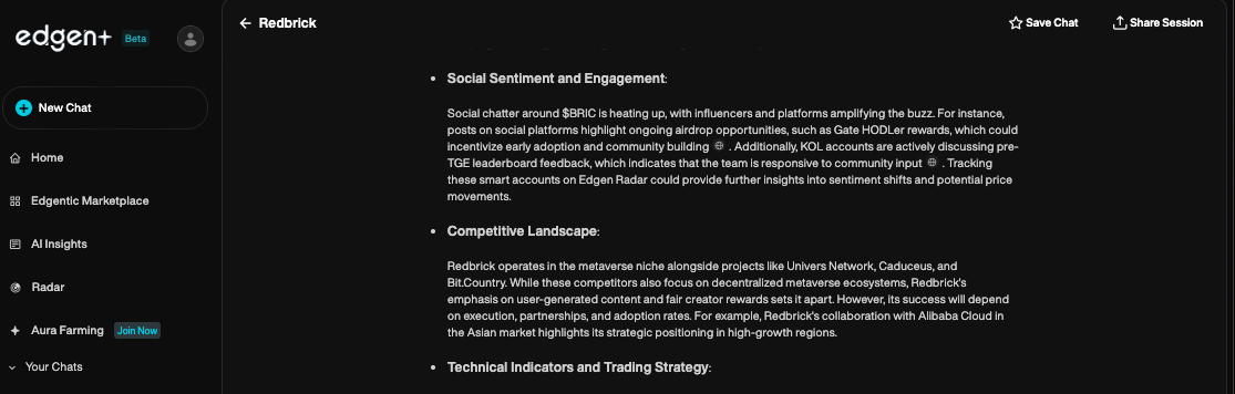 - 結合するCrypto Mindshareエッジン・サーチのソーシャルインサイトと素早く市場分析により、取引を行う前に全体的な理解を深めることができます。