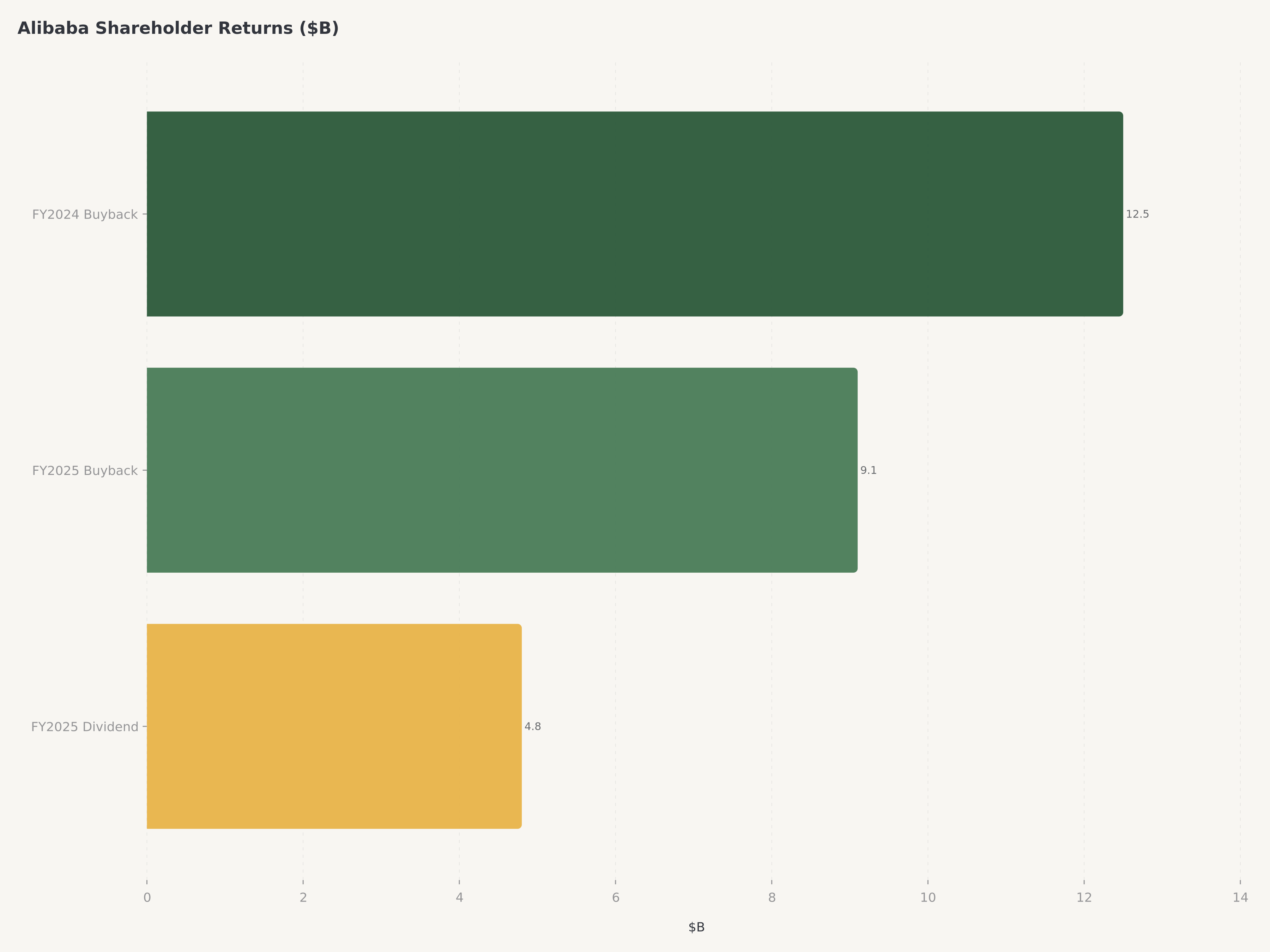 每股$52年度股息加$91亿年度回购,综合股东收益率约6-7%——这在中国科技企业中前所未有。