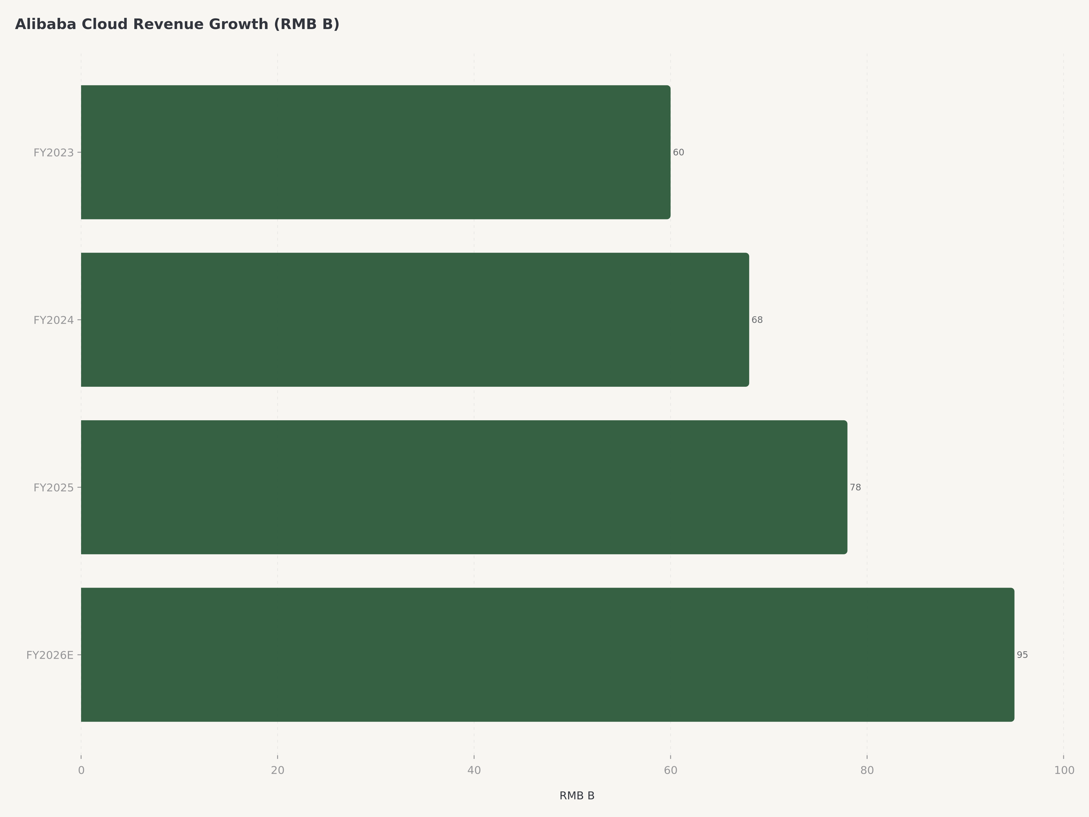 宏观经济背景是复杂的。中国GDP增长已放缓至4%中段,消费者信心虽从2023-2024年低谷回升,但在不同收入群体间仍不均衡。然而在这一总体画面中,数字基础设施支出讲述了不同的故事。中国企业云采用渗透率仍落后美国约3-5年,而生成式AI浪潮正在迅速缩小这一差距,中国企业急于部署大语言模型、AI驱动的客户服务和智能供应链优化。阿里云处于这两大世俗趋势的交汇点。