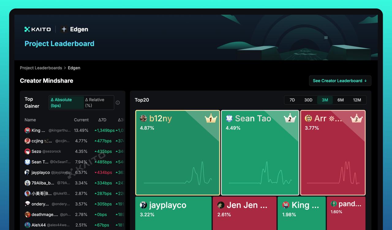 [Update] Following recent changes to Kaito’s public leaderboard and X’s platform policies, Kaito’s leaderboard has been sunset. This does not affect Edgen: Aura and Edgen Leaderboards remain fully operational and independent, with upcoming quests focused on helping you manage your portfolio better and make more informed investment decisions.