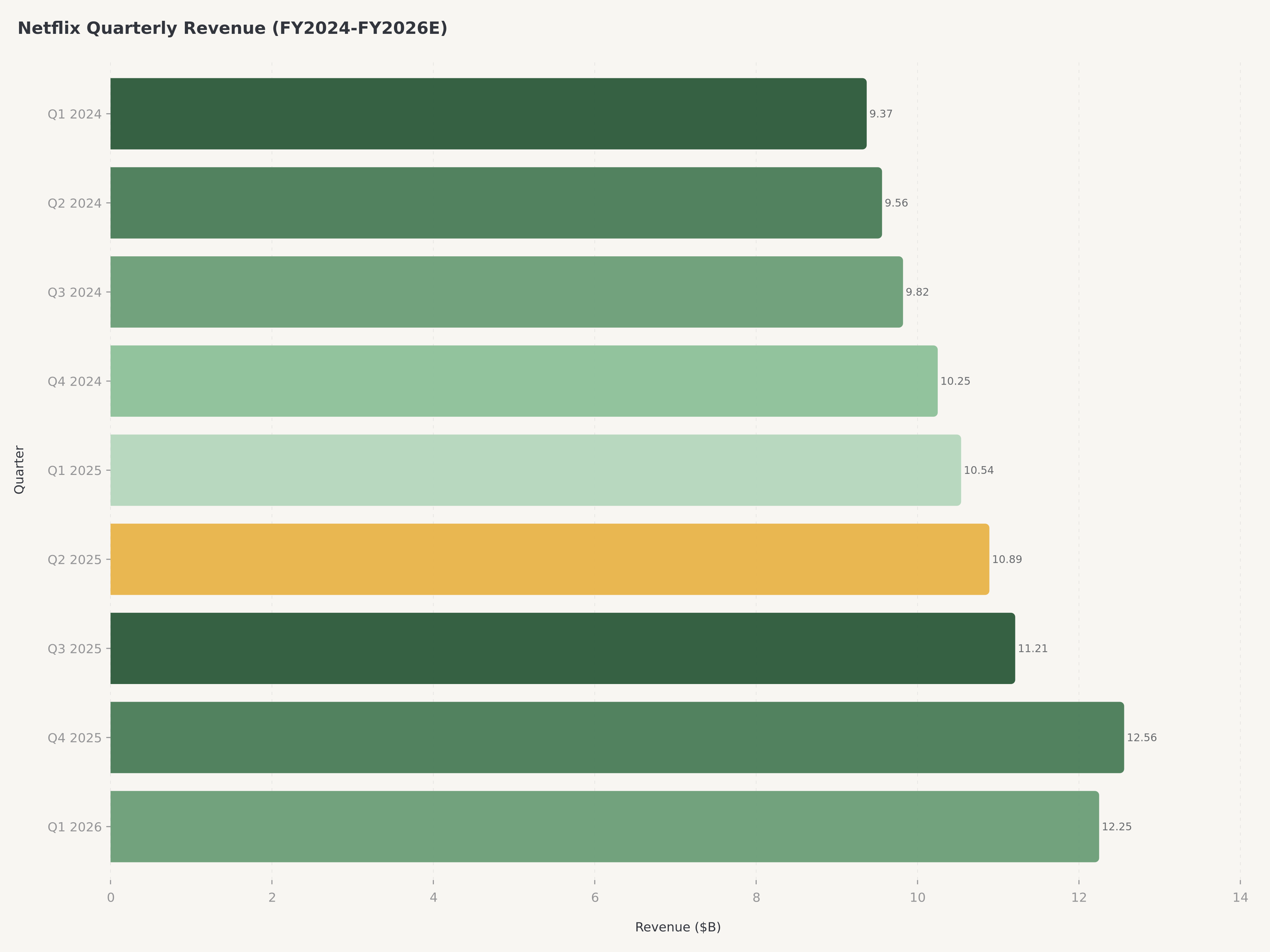 Le guidage de CA T2 2026 de la direction prevoit une croissance de 13 % sur un an, legerement en dessous de ce que certains analystes esperaient apres le T1. Le ralentissement reflete deux facteurs : premierement, des bases de comparaison plus exigeantes a mesure que l'effet anniversaire de la repression du partage de mots de passe s'estompe ; deuxiemement, des vents contraires de change lies au renforcement du dollar americain. Le guidage annuel 2026 de 50,7 a 51,7 Mds $ de CA et l'objectif de 31,5 % de marge operationnelle sont maintenus, impliquant une acceleration au second semestre avec la montee en puissance de l'offre pub et les lancements de contenus phares.