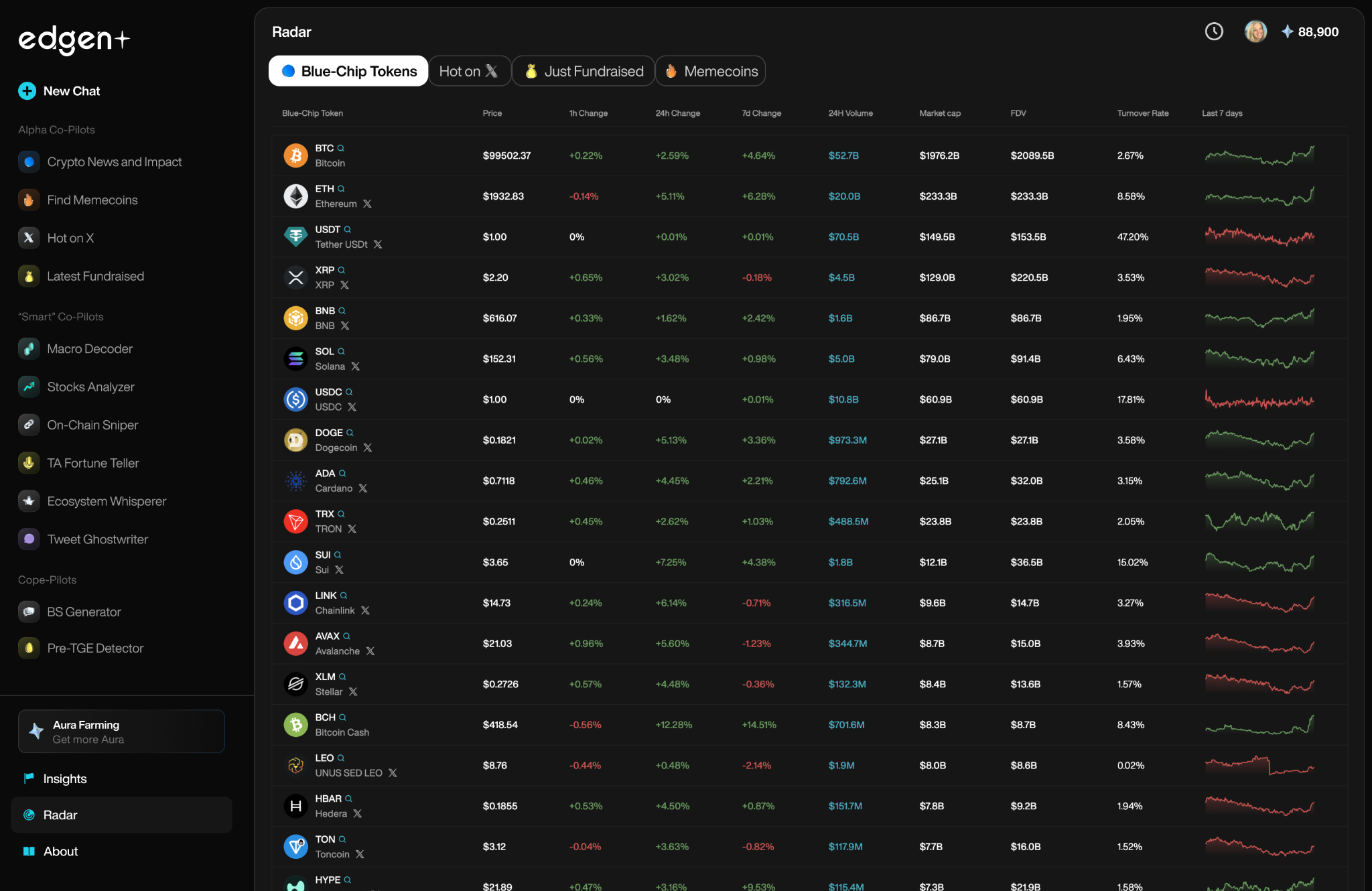 - エッジン・ラダーよりも上位500社Blue-Chip Tokens「」($cashtag または X アカウントタグ).