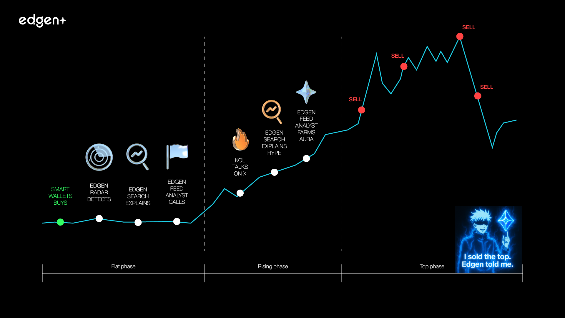EdgenAIの正確性、リアルタイムのブロックチェーンインサイト、ソーシャルセンチメント分析を組み合わせたものです。盲点も推測も不要です。ただクリーンで実行可能なアルファがあります。