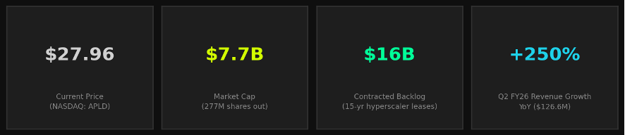 人工智能数据中心基础设施市场正处于长期高速增长。包括微软、谷歌、亚马逊和Meta在内的主要超大规模运营商已累计承诺在2025和2026财年投入超过3000亿美元的资本支出,其中很大一部分用于GPU密集型计算园区。这为APLD等专业运营商创造了多年的增长顺风。